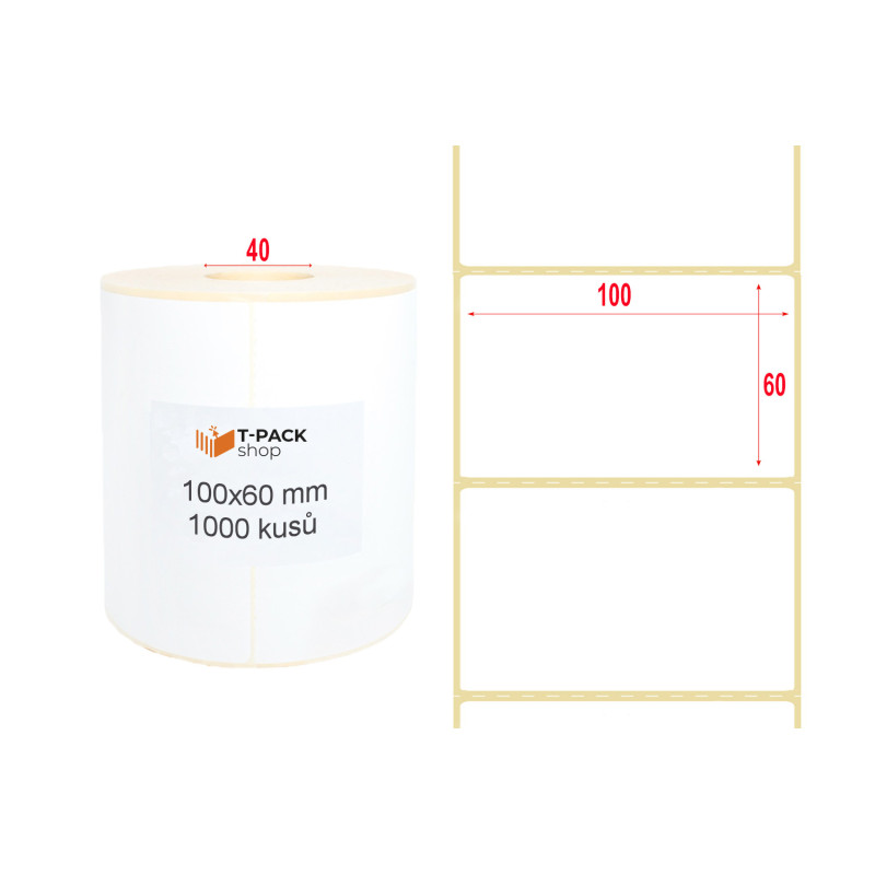 Samolepicí etikety 100x60 jsou nezbytným prvkem efektivního značení zboží a výrazně usnadňují řízení skladu. Kvalita tisku a lepidla ovlivňuje trvanlivost označení. Naše termoetikety 100x60 zaručují ostrý černý tisk, který zůstává čitelný ve vnitřních suchých skladech.